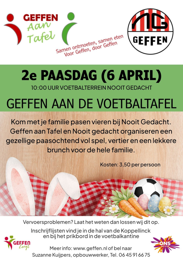 Spread the news, laat iedereen weten wat voor moois er op de planning staat! Deel de poster met iedereen die je kent binnen Geffen. Zorg dat je er bij bent en wie weet kom je nog wel een heuse paashaas tegen ?